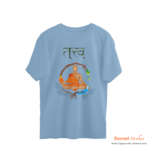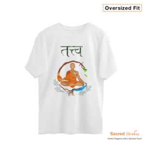 This unique design captures a monk deep in meditation, surrounded by the elemental forces of nature: water, fire, and air. The sacred Sanskrit text above, “तत्त्व” (Tattva), signifies the interconnectedness of these elements, reflecting their significance in Hindu philosophy.