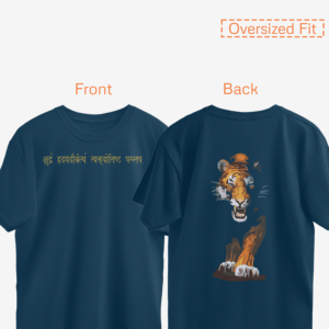 Unleash your inner warrior with our Roaring Tiger Unisex Oversized Half Sleeve T-shirt from the Shloka Essence collection. On the front, find the powerful Sanskrit verse, ‘क्षुद्रं हृदयदौर्बल्यं त्यक्त्वोत्तिष्ठ परन्तप,’ which translates to ‘Give up such petty weakness of heart and arise, O vanquisher of enemies.’ This verse, derived from the sacred scriptures, encourages us to cast aside our inner weaknesses and embrace our strength.